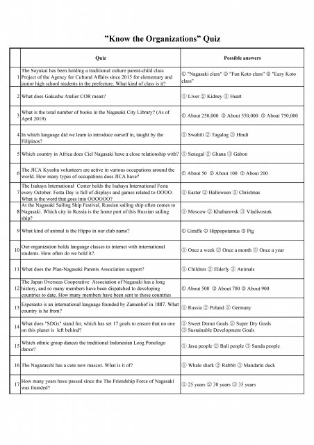 ①団体の活動紹介(動画・写真)を視聴後、クイズに回答する団体を2つ決める