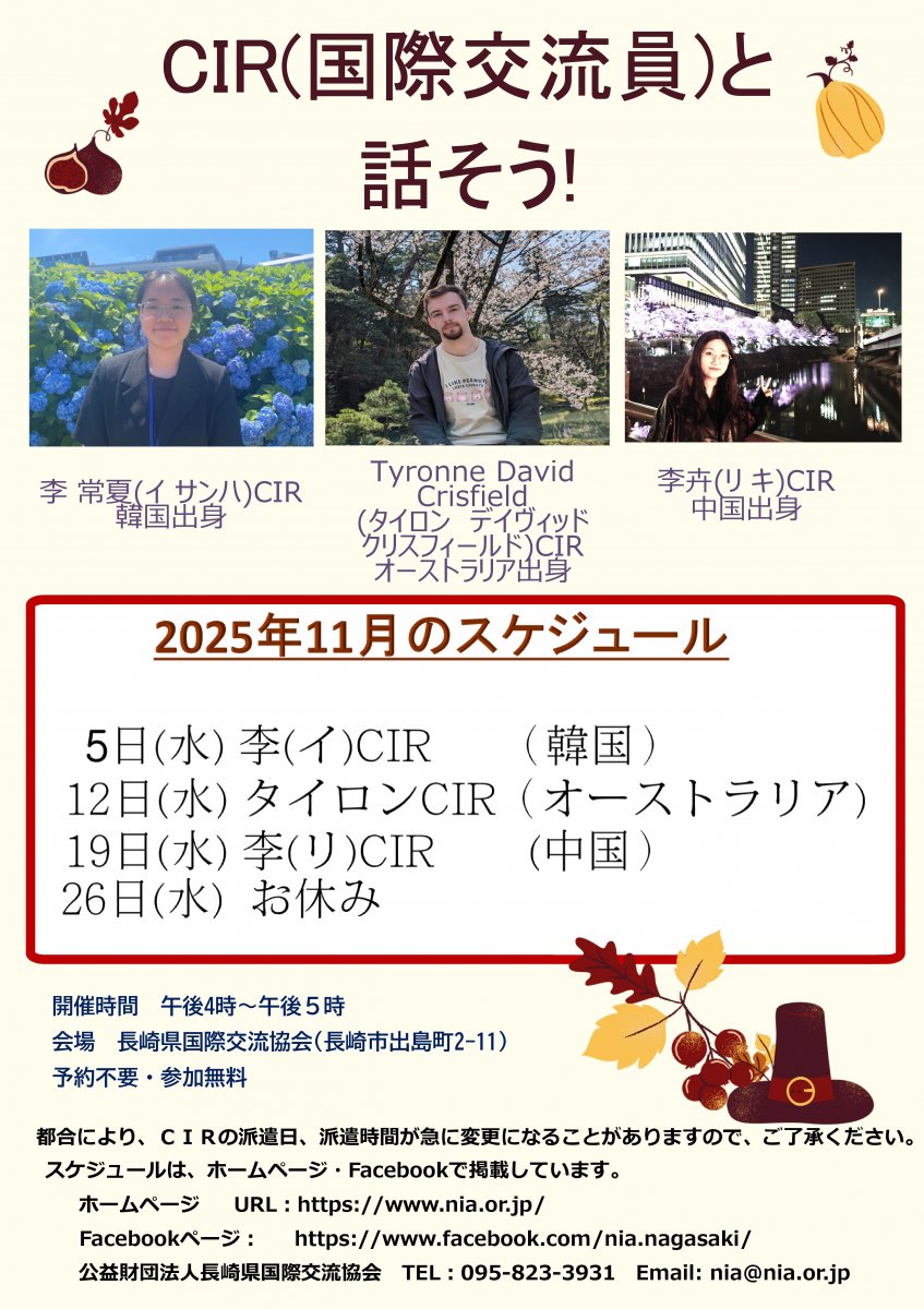 11月の『CIR(国際交流員)と話そう!』の開催について
